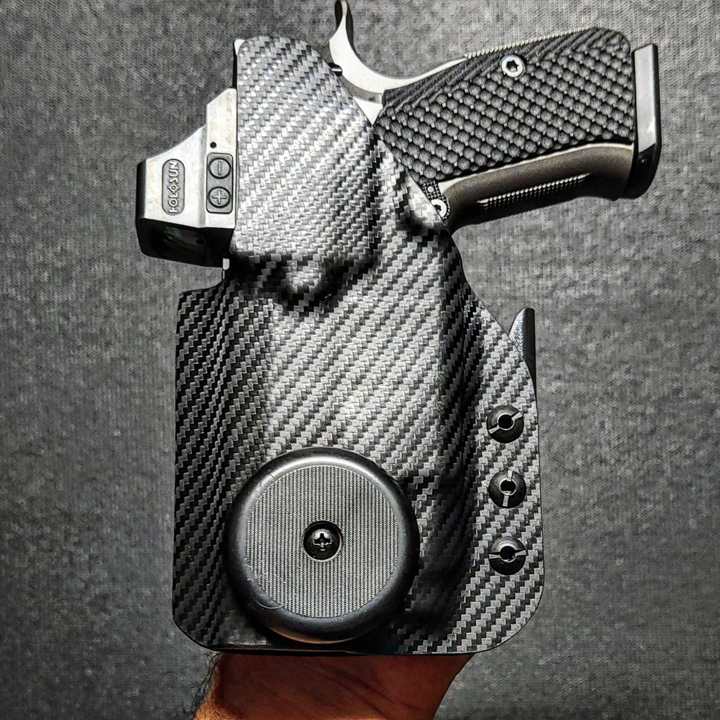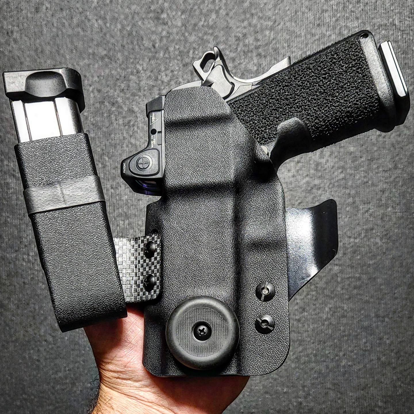 Non-Light Bearing IWB Holsters: $80 (plus shipping) Please email rfvtactical@gmail.com to place an order, or send us a message on Facebook or Instagram. We also make non-light bearing IWB holsters for the all of the handguns listed above. ![]() ![]() ![]() ![]() ![]() ![]() "What is that round black thing on the back of the holster?" NOTE: the belt clip shown in these examples is the ONLY clip we offer for our non-light bearing appendix carry (AIWB) holsters. See our available colors and graphic prints of Kydex Also available as a "side-car" style holster with an integrated mag carrier! ![]() ![]() |