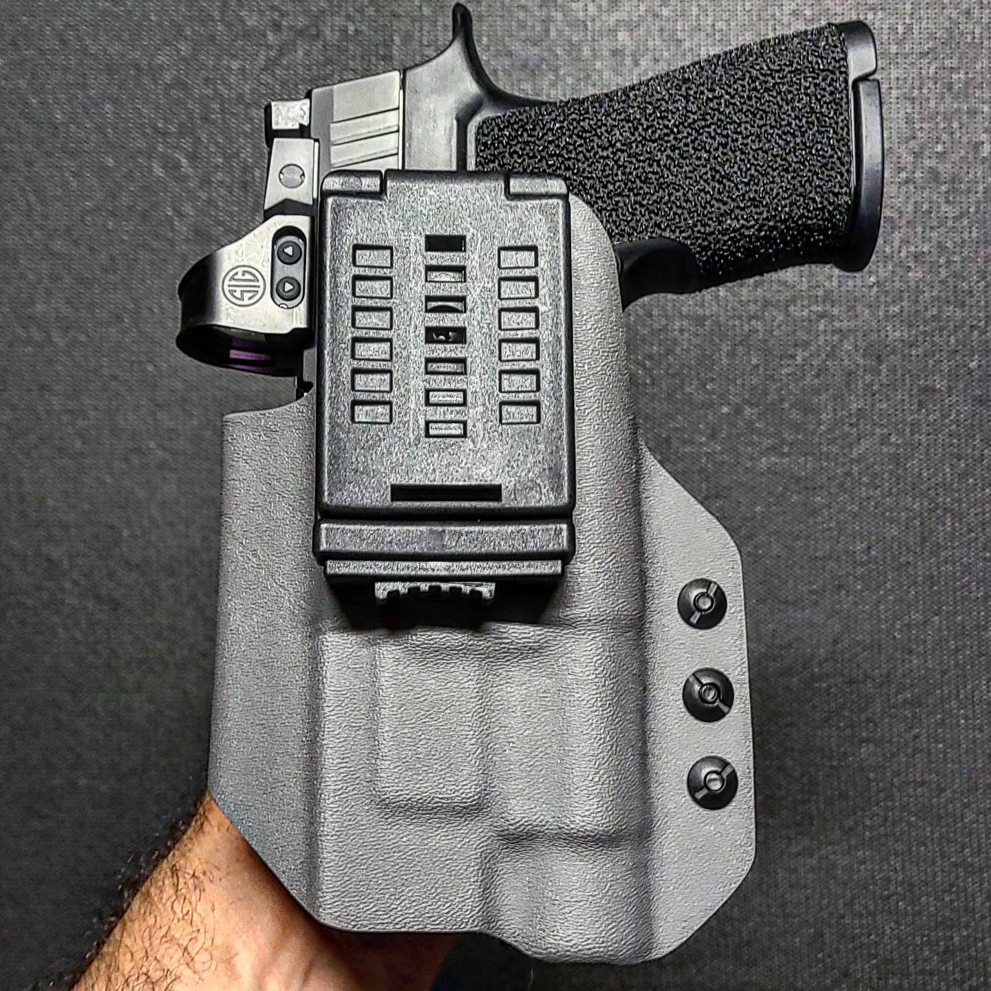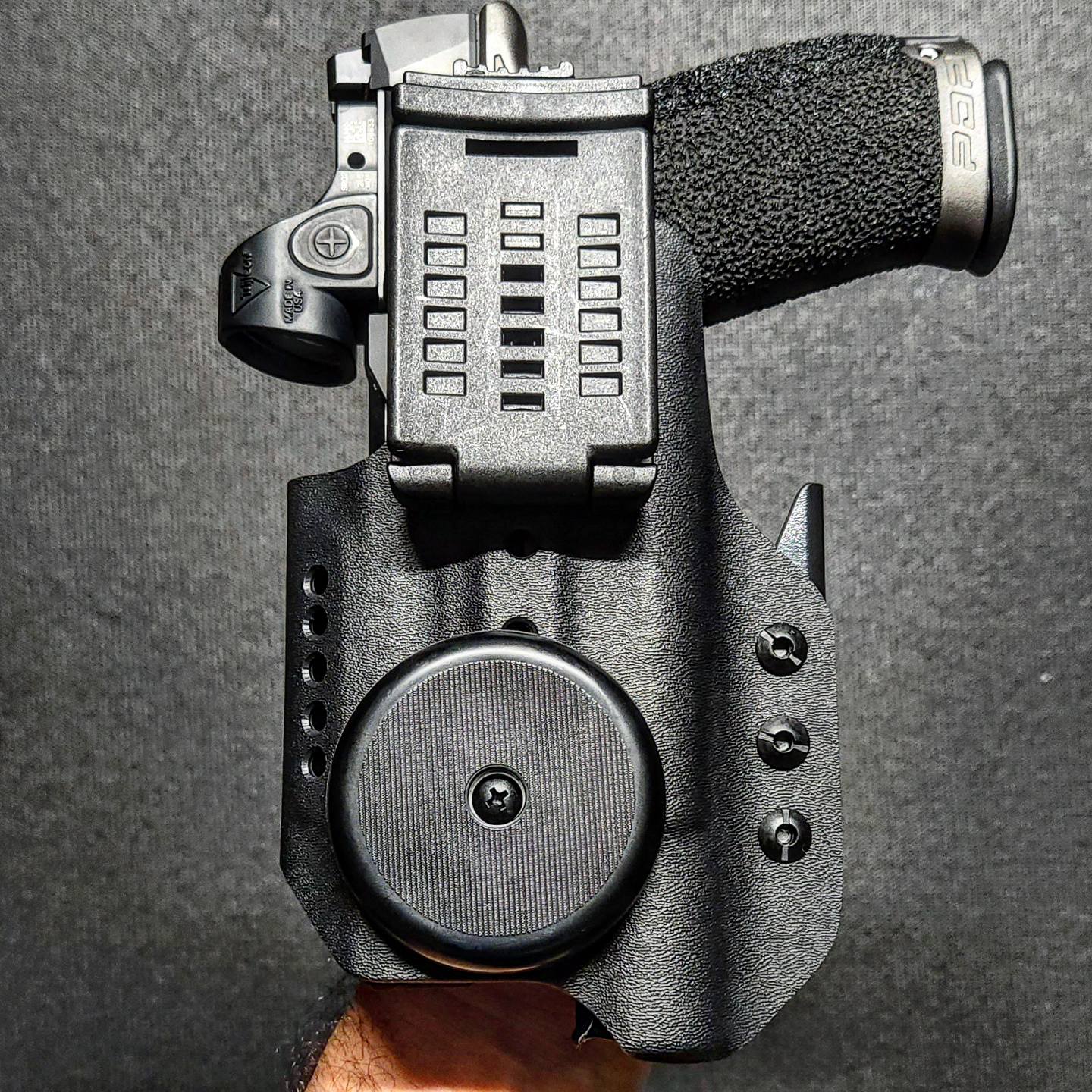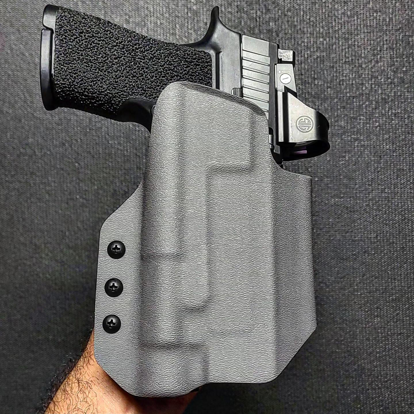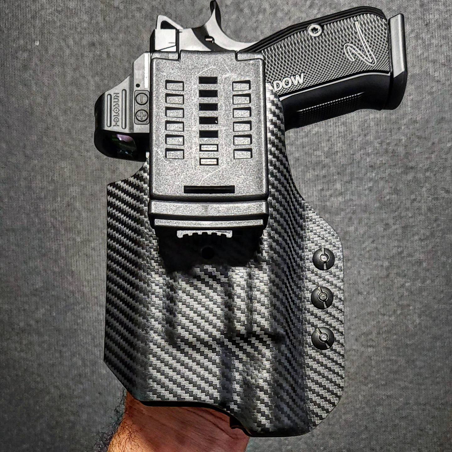 ![]() NOTE: Our full-size weapon light indexing holsters have a friction fit retention solely on the body of the light rather than a "click" retention. Be aware that because of the universal fit nature of these holsters, there may be a little bit of play or movement of the gun while it is in the holster. DISCLAIMER: These OWB holsters are NOT suitable as a duty style holster and should only be used for general range usage. See our available colors and graphic prints of Kydex OWB holsters include a DOTS Combat Loop belt attachment. This belt mount is similar to the BladeTech Tek-Lok mount, but is easier to lock once on the belt and unlock for removal. ![]() The mounting hole pattern also works with the Safariland QLS fork. IWB/OWB Combo Full-Size Weapon Light Indexing Holsters: $90 (plus shipping) Please email rfvtactical@gmail.com to place an order, or send us a message on Facebook or Instagram. Our full-size weapon light indexing holsters are also available as a dual purpose IWB/OWB combo version. They can be changed from IWB for concealed carry usage to OWB usage for competition or general range use in just a few minutes by simply installing the included OWB belt mount.